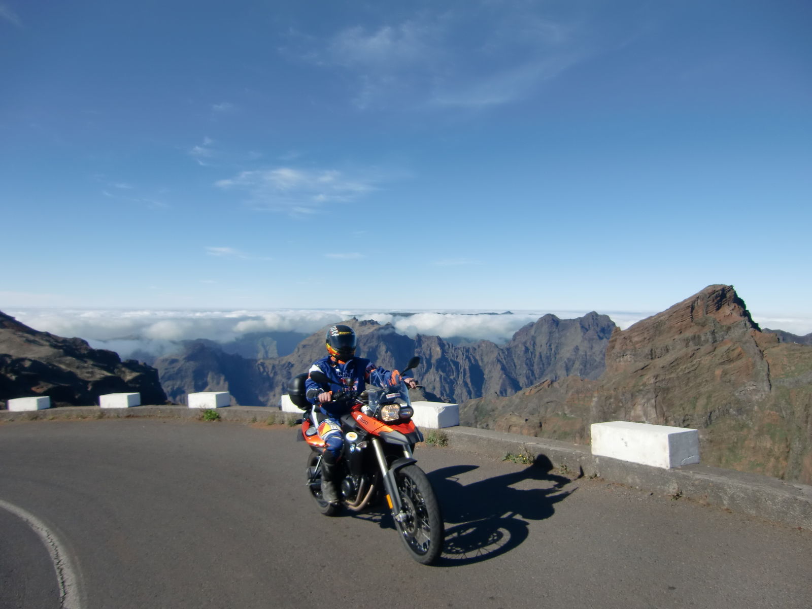 Da der Frühling Deutschland nicht findet habe ich mich auf der Suche nach ihm gemacht,gefunden habe ich ihn auf Madeira.Die Insel Madeira liegt über den Kanaren auf der Höhe von Gibraltar und gehört zu Portugal.Es gibt Berge bis über 1800m und tief eingeschnittene Täler.Madeira ist die Insel des ewigen Frühlings im Winter ein wenig unter 20" im Sommer ein wenig über 20"also super zum Motorrad fahren!!!!Der Nord Westen der Insel ist feucht der Süden trocken und öfter sonnig.Wegen des Klimas kurierte sogar die Kaiserin Sissi hier ihre Lungenkrankheit ihre Spuren findet man in Funchal und Monte heute noch.Das eigne Bike auf die Insel zu bringen lohnt sich nicht deshalb ist mieten die bessere Wahl.Leider gibt es auf Madeira nur eine Firma die Motorräder verleiht und die gehört einem Deutschen und was hat er für Bikes????Nur BMW gg!!!!!!Die GS 800 ist zum fahren hier die Beste Wahl und ich muss ehrlich sagen sie fährt sich net schlecht.So hier ein paar Bilder.....................