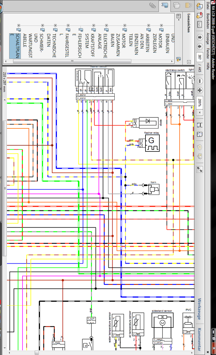 Richtig, Blinker und Hupe hängen auch dran, siehe Auflistung der Sicherungen in der Betriebs-Anleitung und auch die Schaltpläne. Das grünweiße Kabel geht an das Bremslicht, das blaugelbe Kabel geht an die beiden Bremslichtschalter, an Flasher Relais und an die Hupe.