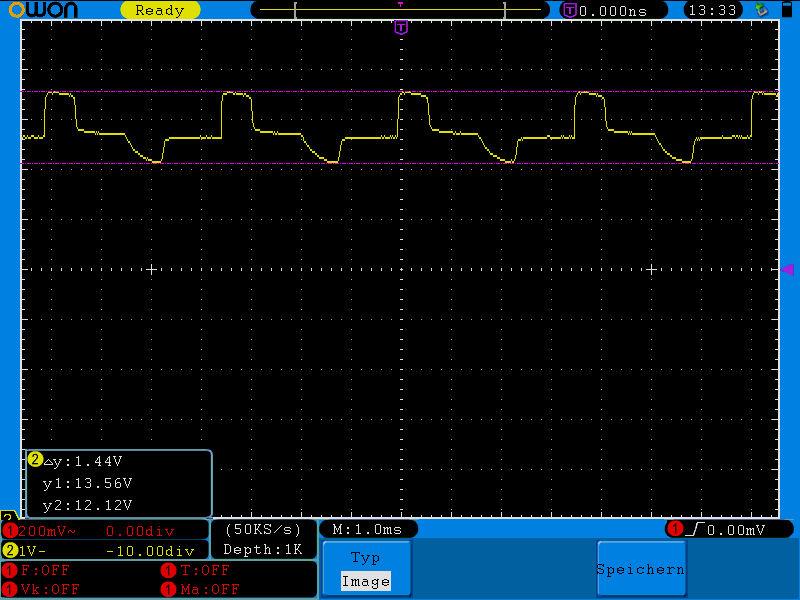 | so sieht die Kurze kurz nach dem Start aus. Impuls-Salven von ca. 1,8 Volt werden auf die Batterie geschossen: |