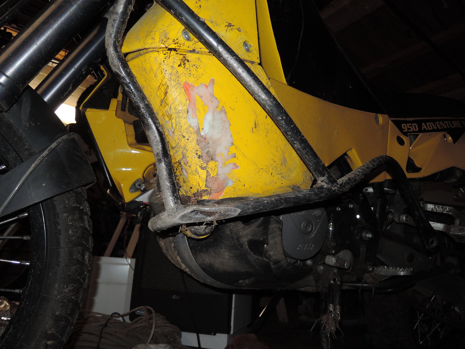 - Sturzbügel arg zerbeult und in den linken Tank eingedrückt. Aber Tank noch dicht.
