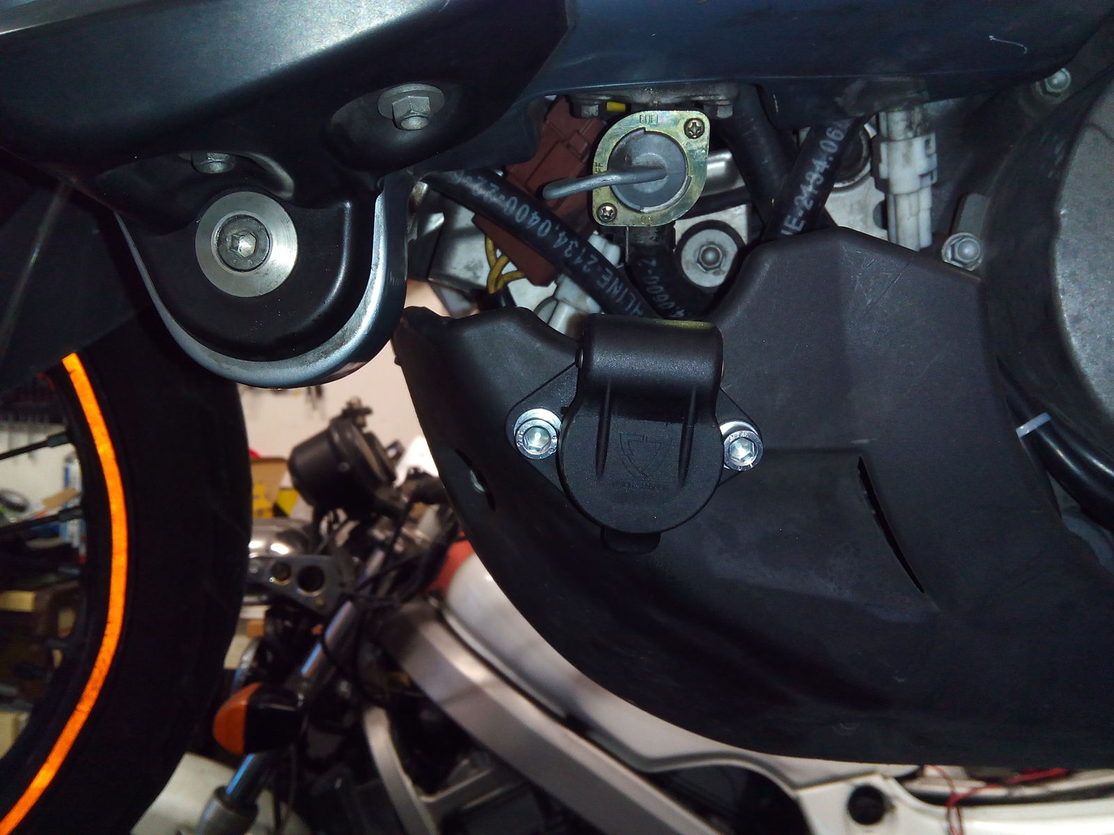 Eingebaut ist das fix. 26mm Loch in den Plastikteil des Motorschutzes bohren, die 2 Anschlüsse unten locker verlegen (Kabelbinder) und ran an die Batterie. Btw hab ich die Schrauben an der Batterie gleich mal gegen 6er Inbus getauscht. Dieses Gewürge mit der Nuß oder Kreuzschlitz hat damit ein Ende.