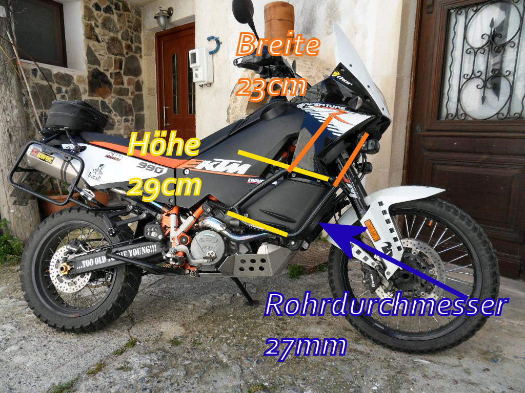 Bischn kurz die Tasche für den Bügel! Siehe Foto.......issn SW-Motech Bügel, also kein KTM oder TT Bügel, diese Maße kenne ich nicht!