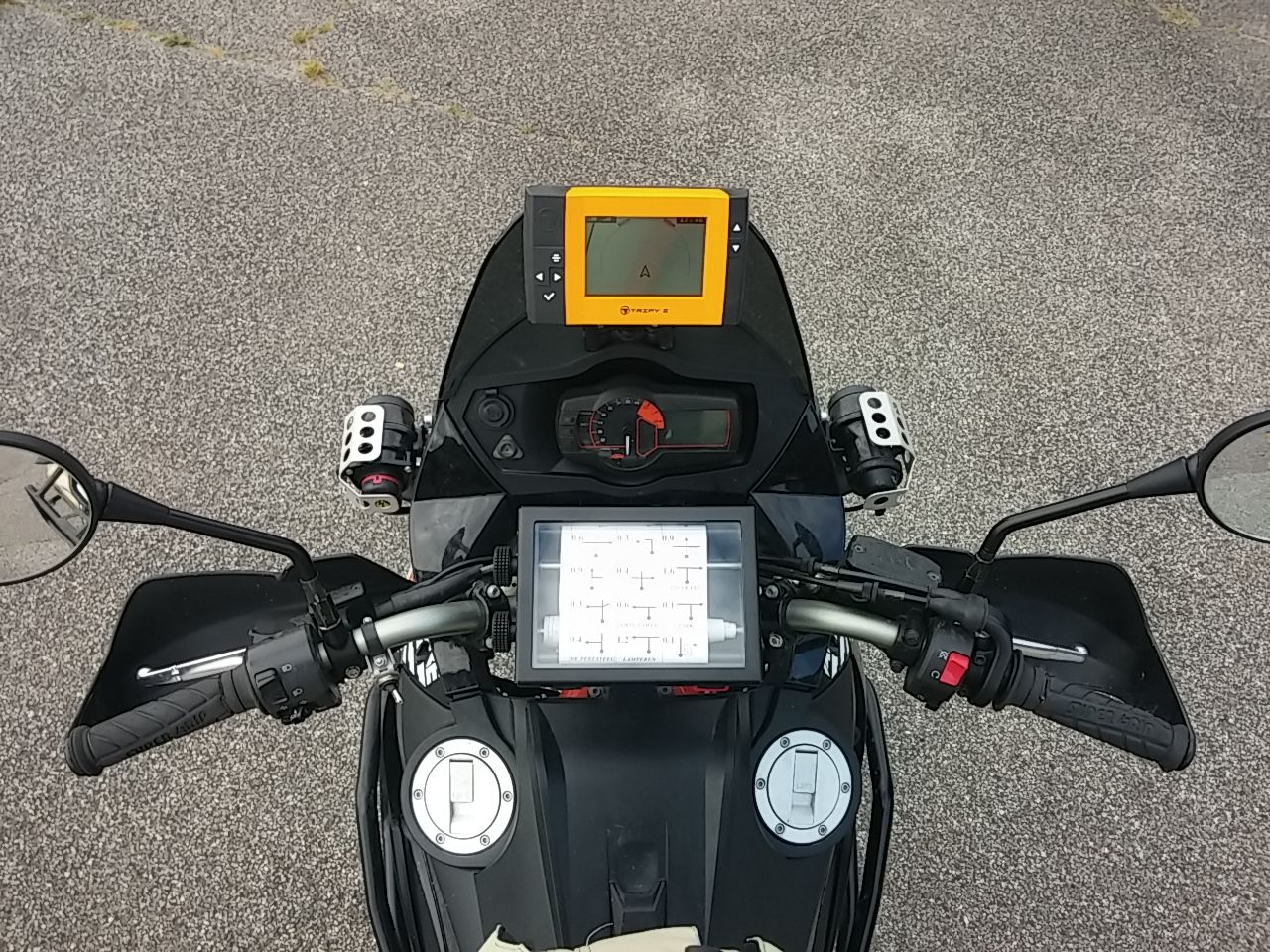 ..ich das neuwerworbene tripy nun endlich auch mal aufem mopped ausprobieren konnte. sichtbarkeit hervorragend. mit dem ganzen roadbookerstellungssoftwaregedöns muss ich mich dann mal in ruhe befassen. bin da noch völlig ahnungslos und habe auch keine garmin-kenntnisse.