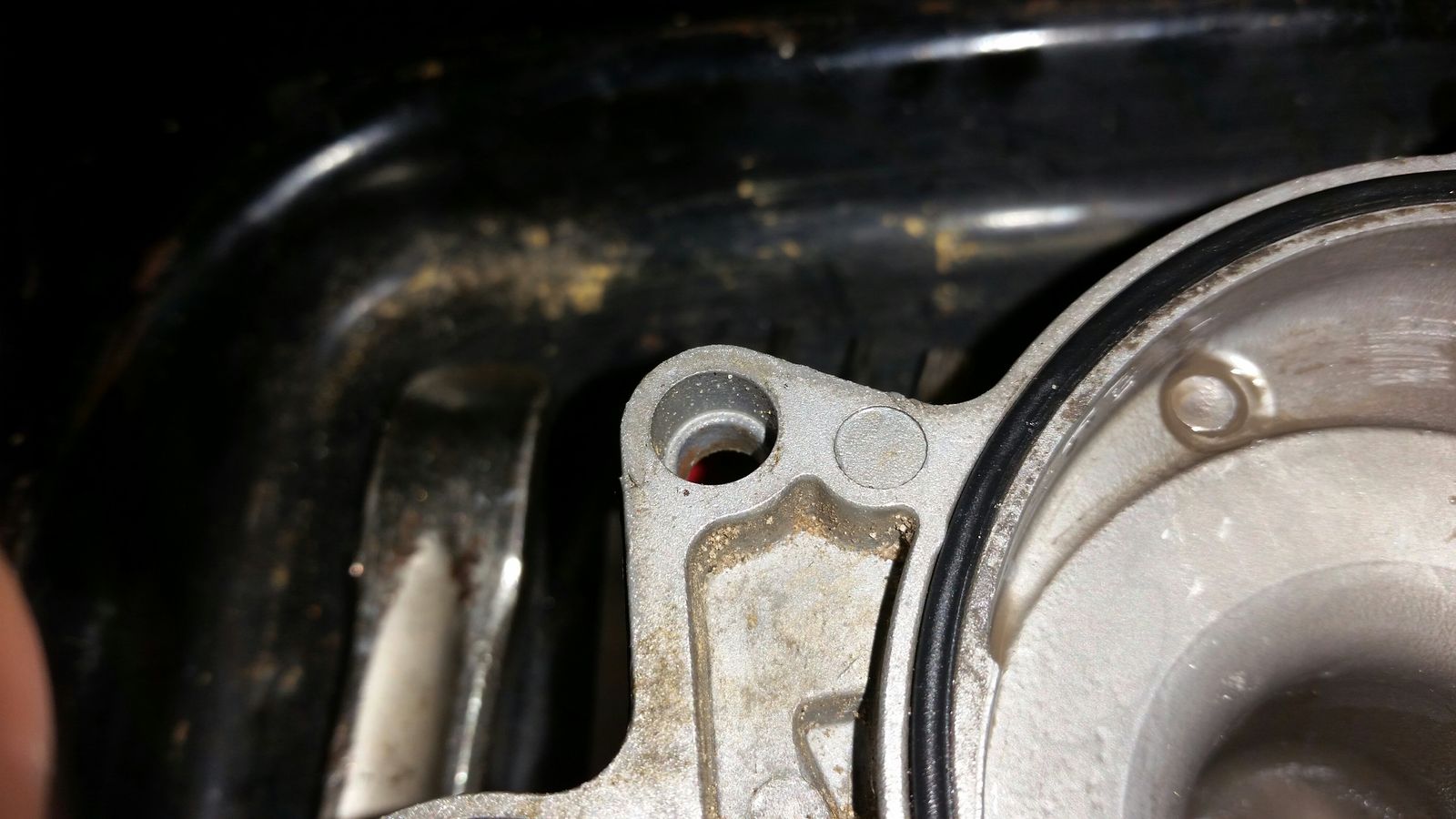 Wasserpumpe wurde getauscht, dummerweise habe ich beim abnehmen der Wasserpumpe (Deckel) eine Hülse in den Motor fallen lassen, was kein Problem war, da sie oben auf lag. Doch wo ist die zweite Hülse hin?