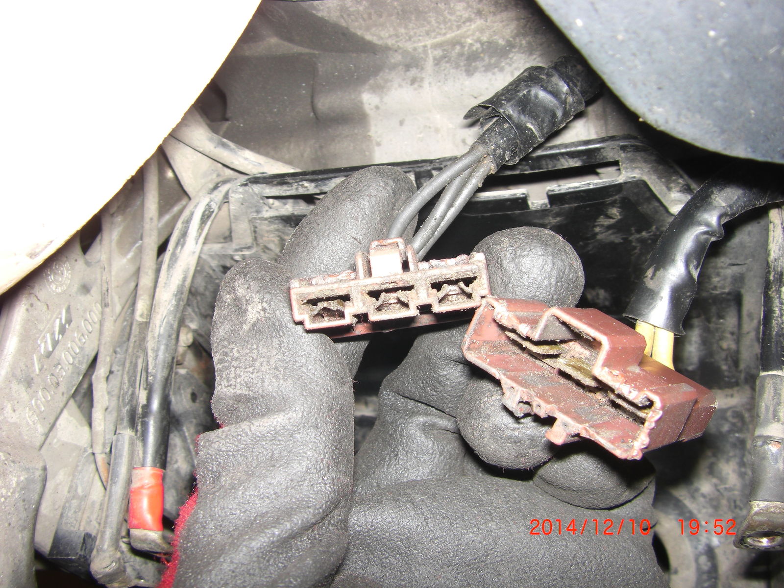Strapse den Stecker an den linken Motorträger, dort ist's nicht ganz so schmutzig.
