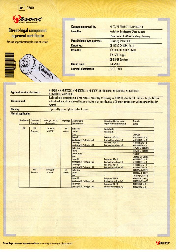 | kannst auch mal akra oder ktm anmailen, die sind da üblicherweise sehr hilfsbereit.