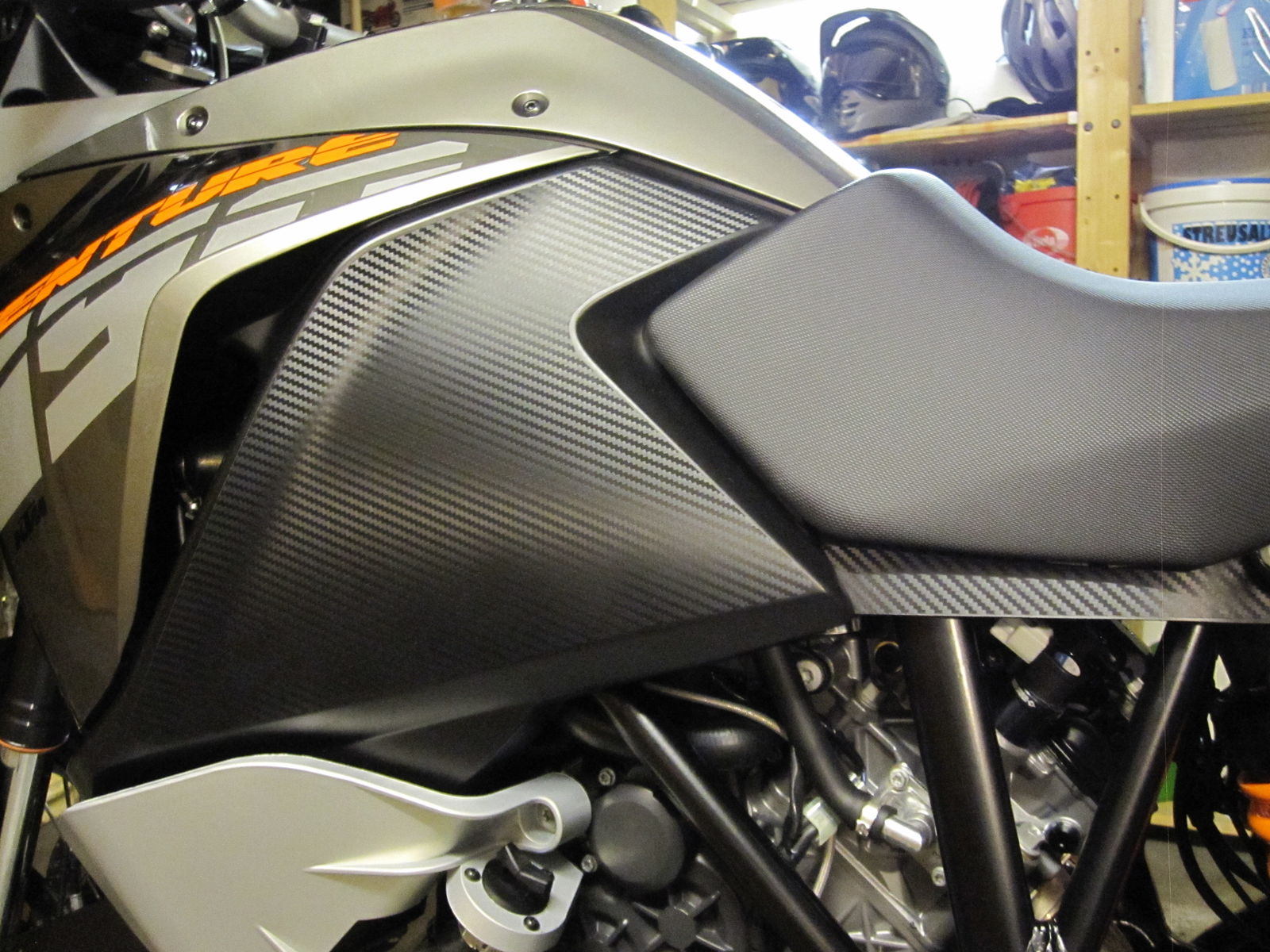 Wo hast du denn die Carbonfolie her, die da noch auf dem Tank klebt?