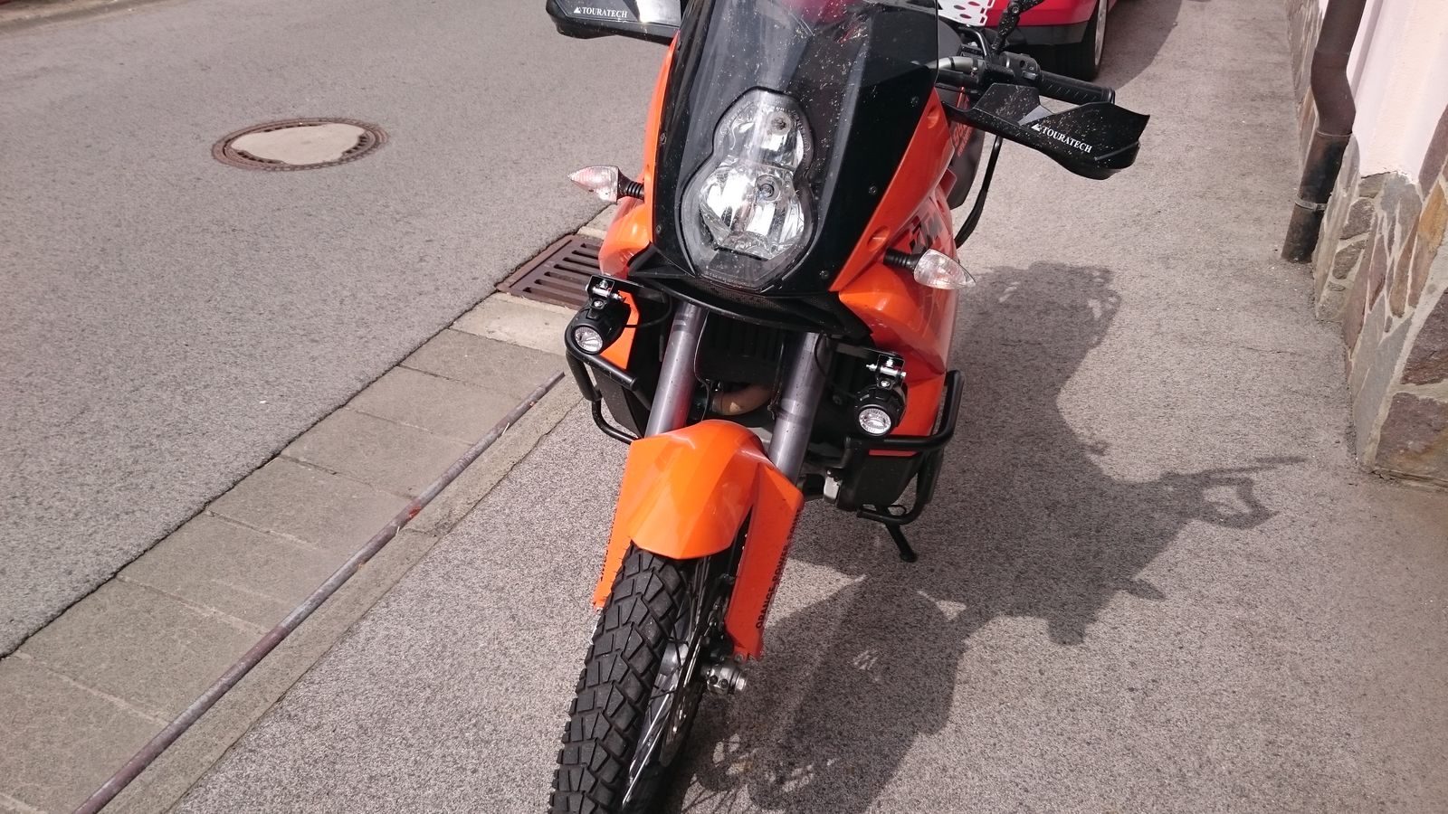 ich will mal kurz das Thema mit den Zusatzscheinwerfern aufwerfen. Ich möchte gerne welche an meine 990 Adventure von 2007 anbauen. Am liebsten LED-Zusatzscheinwerfer mit Schalter am Lenker und in hängender Position. Sie sollten unbedingt eine E-Zulassung haben. Den orginalen Nachrüstsatz von KTM gibt es anscheinend nicht mehr (hat auch keine E-Zulassung). Der Satz für die 1190 ist mir mit knapp 450 Euronen etwas teuer wacko