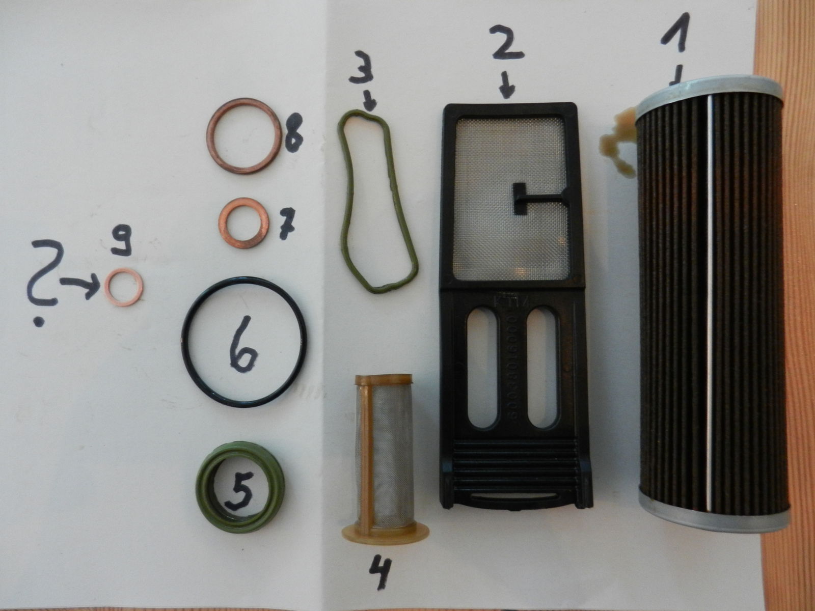 Im angehängten Bild sieht man die im Service Kit enthaltenen bzw. getauschten Teile: