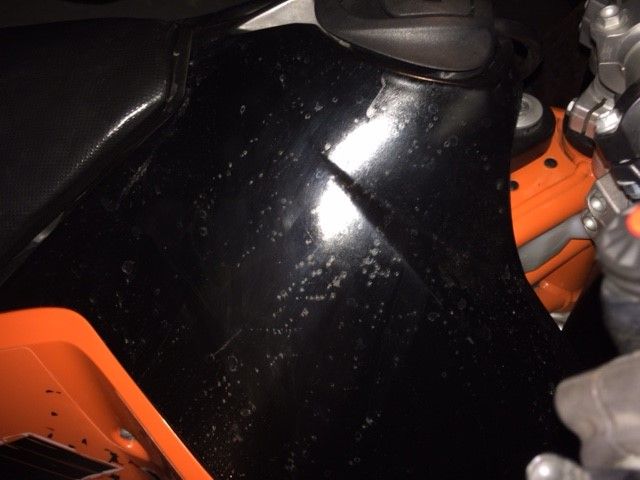nachdem ich mir eine gebrauchte SE gekauft habe, musste ich beim Tanken gleich eine ziemlich üble Entdeckung machen: Mir ist Benzin übergepladdert und die kurze Zeit, die es brauchte, um mir ein paar Tücher zu holen, haben die Außenseite des Tanks so angegriffen, dass die hässlichen Laufnasen mit Blasen nicht mehr weggehen... Bleibt mir wohl nichts anderes übrig als bis zum Winter zu warten, das Ding abzubauen und zum Lackieren zu geben, oder hat jemand ne charmante Idee (wer denkt sich denn so nen Mist aus - nen Tank, der nicht benzinbeständig ist dry )?