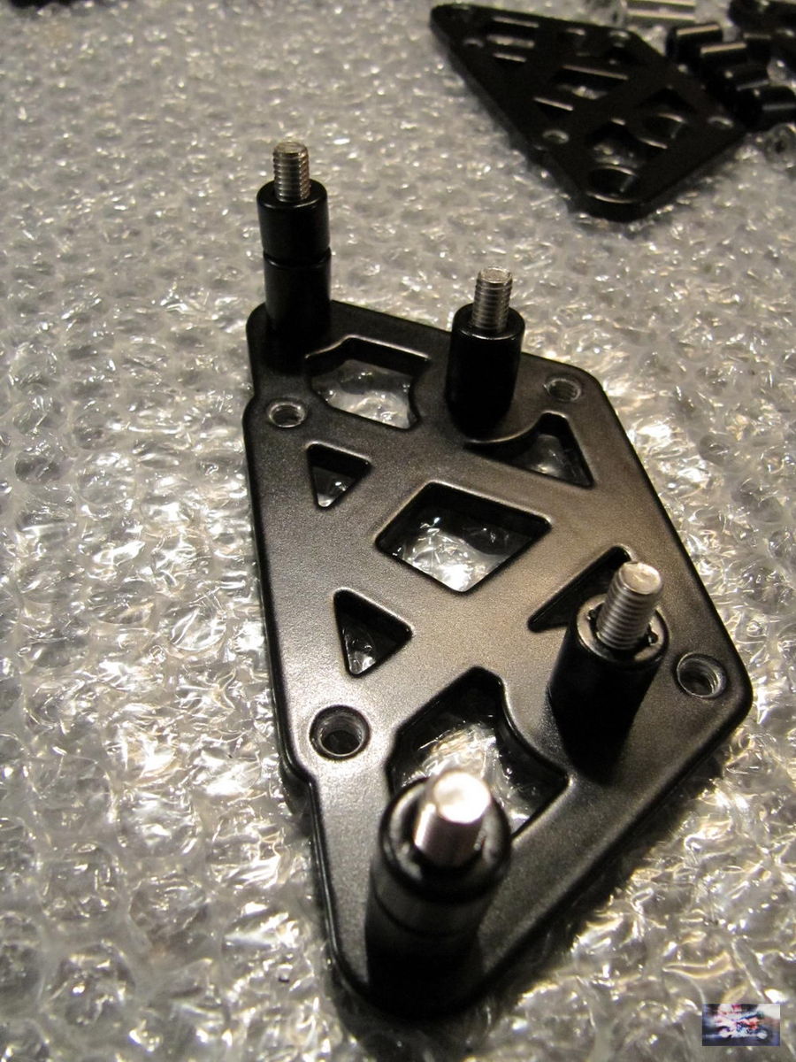 5. Die 25mm Buchsen (eigentlich ja 10+15mm Buchsen) kommen an die Gabelbrücke/ oder breitester Teil der Adapterplatte, da wo die Eigentliche Kunststoffplatte befestigt war.