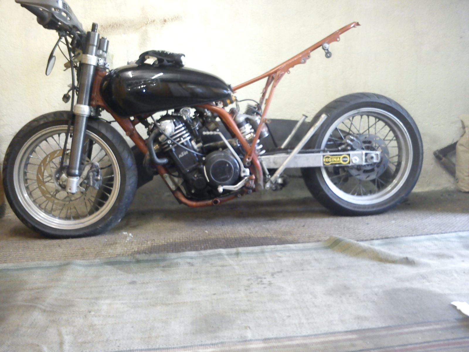 Nur mal als Idee,Vielleicht nen Scrambler mit 21 / 18" bauen? Und ohne Choppertank?