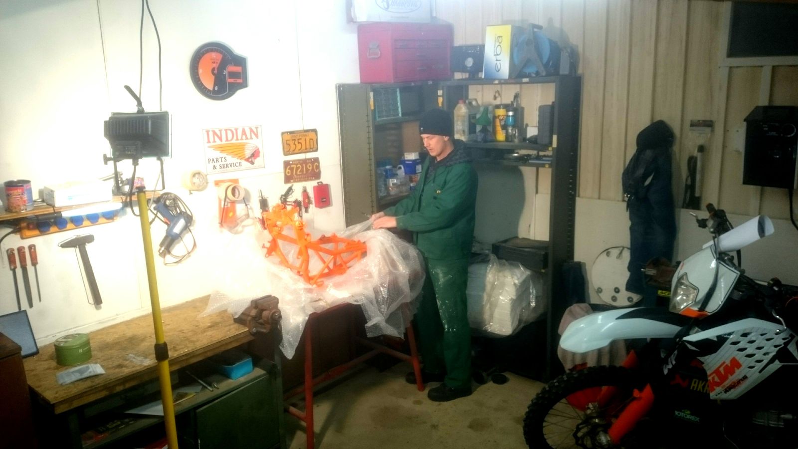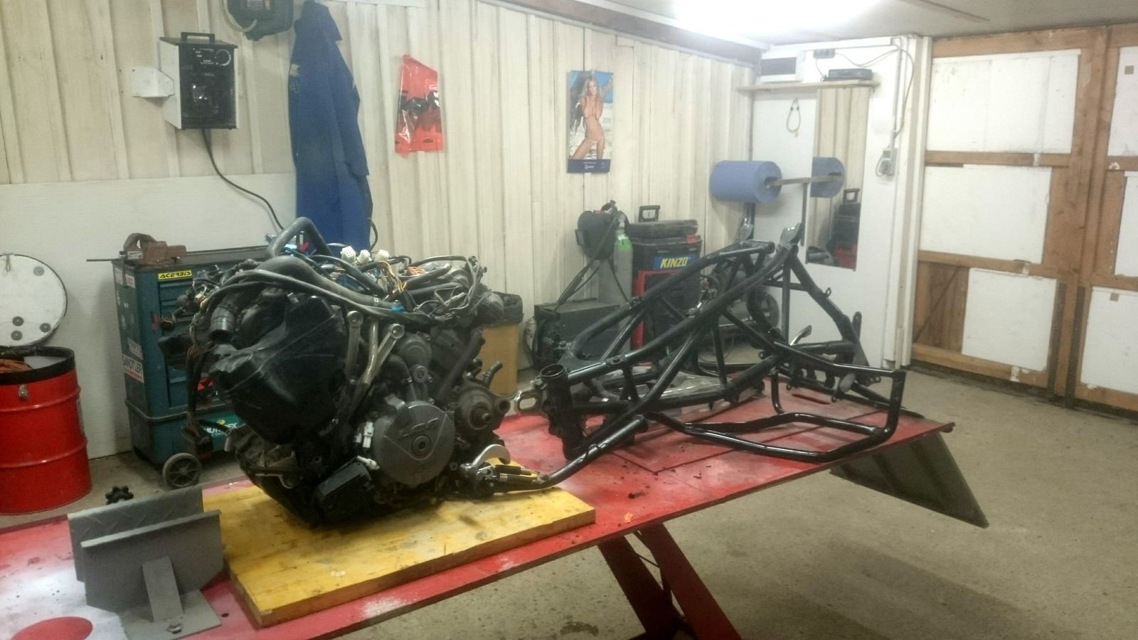 ....Rahmen, Schwinge, Sturzbügel und Kleinigkeiten gehen zum Pulverbeschichten!! jetzt wird eine 990R gefaked!! Mr. Green