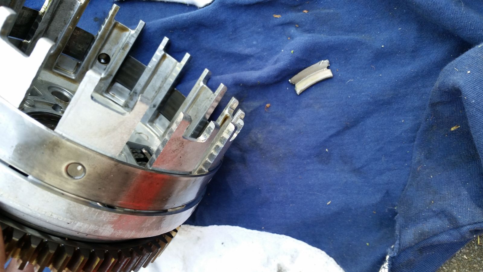 Glücklicherweise kam das abgebrochene Stück nur hinten gegen das Gehäuse und nicht zwischen die Zahnräder.