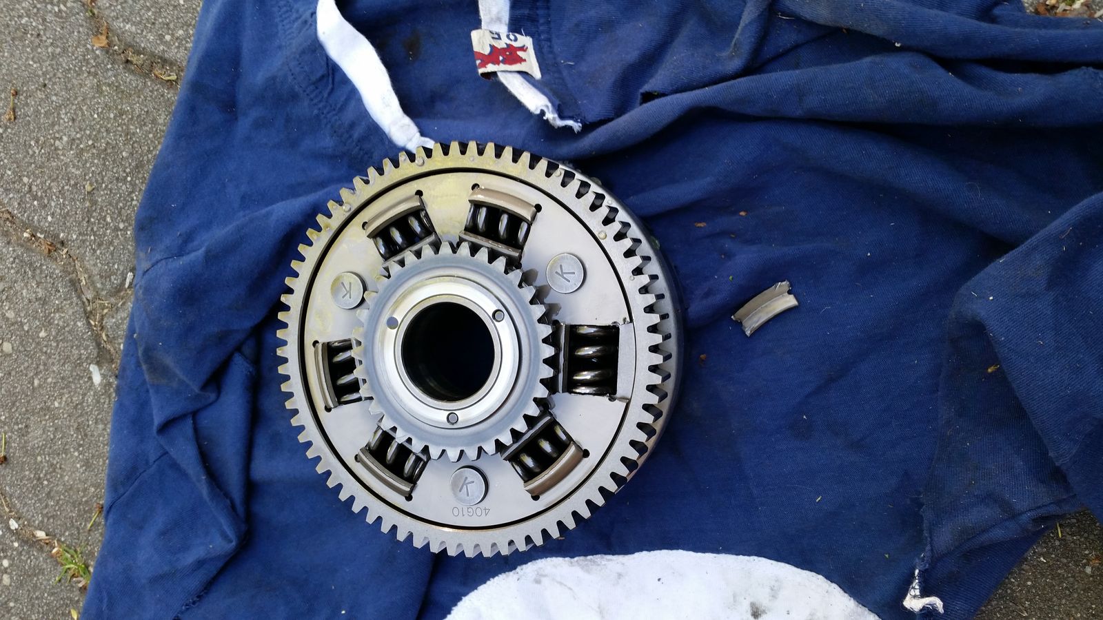 Gott sei Dank habe ich mir den Kupplungskorb neu besorgt, da der alte hinten beschädigt war. Jetzt weiß ich auch woher das nervige Rasseln kam.