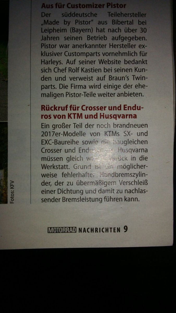 | Wolferl @ Mo, 26. Sep 2016, 11:20 hat folgendes geschrieben: | | ..auf der Imot bringt KTM sicherlich noch die 2016 Modelle mit!? |