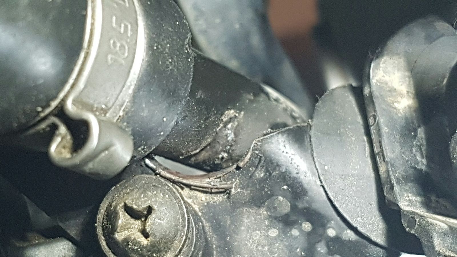 Ausserdem versuch doch einfach mal den Schlauch zu drehen! Der scheint ja etwas locker zu sein und mit Oel ist da eh alles eingesaut Und dann mit ner stumpfen, grossen Kneifzange die Ohrschellen nachziehen/druecken.