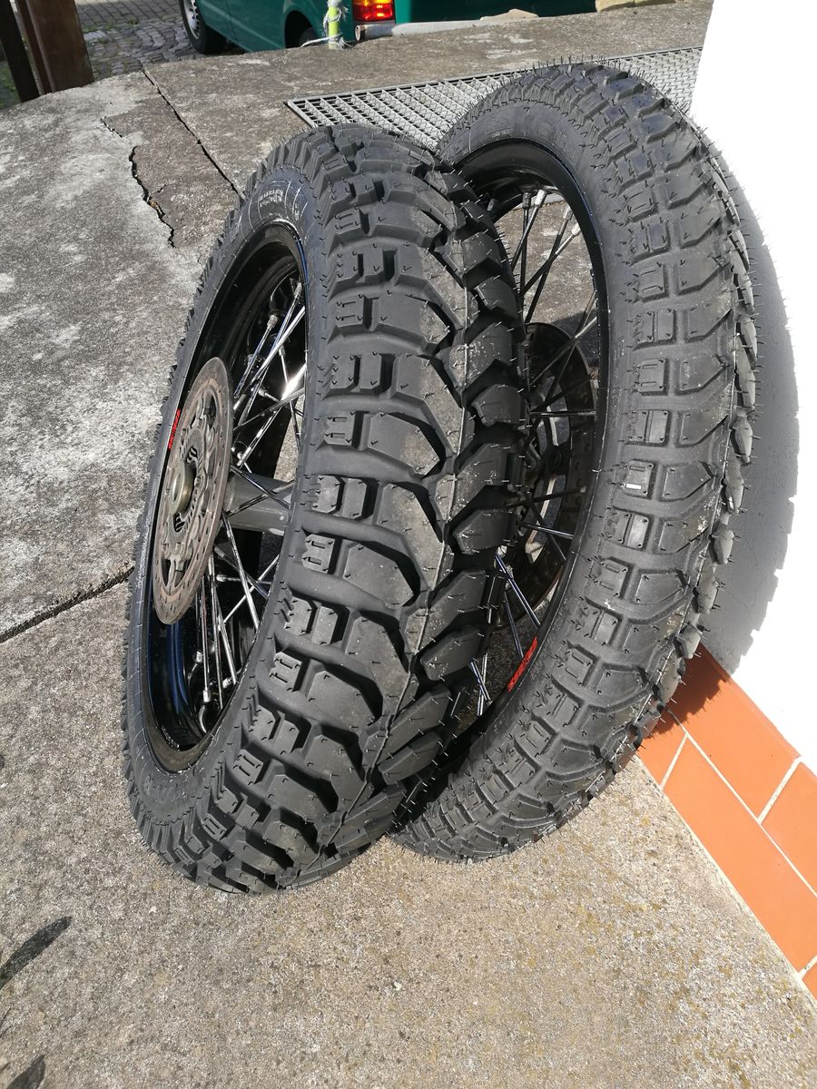 Die richtigen Urlaubs-Reifen habe ich schon. Mitas E07. Hoffe der hält bis dahin.