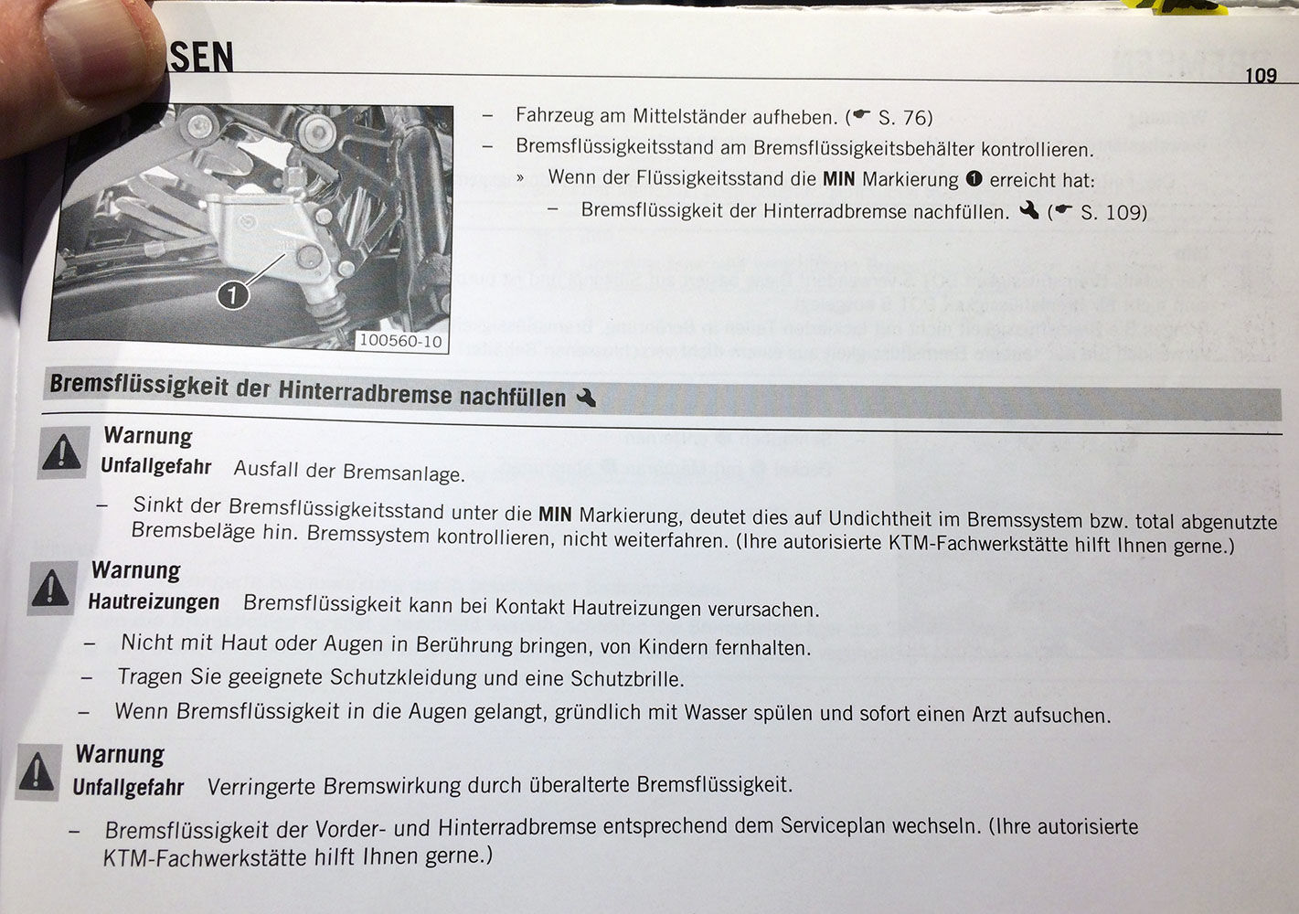 Also ich habe meinen Händler gefragt, nach dem Problem. Weil die Bremsflüssigkeit frisch gewechselt worden ist.