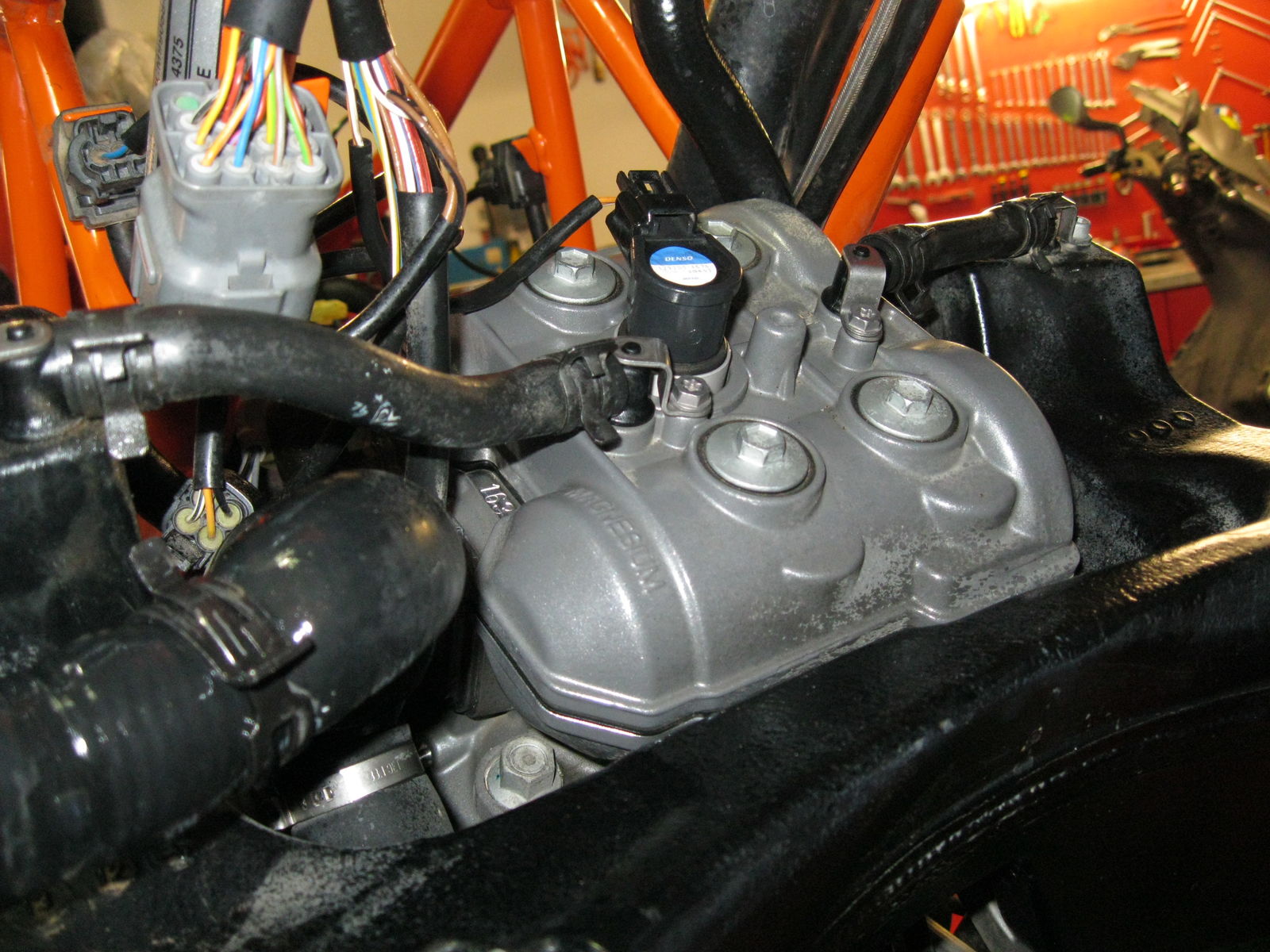 habe ich es gelernt, Kerze und Spule des vorderen Zylinders ohne weitere Demontagen zu wechseln. Echt, aber mit zu 1,70 m Grösse passenden schmalen Händen vielleicht dem geschuldet. Benutzt: den originalen Kerzenschlüssel von KTM (sehr schmal vorn...) und eine pfiffigen Kombi der Teile eines guten Nusskastens. Einziges "Achtung": im Steckverbinder Kabelbaum/ Zündspule kleine, gern verschwindende Gummidichtung!!!