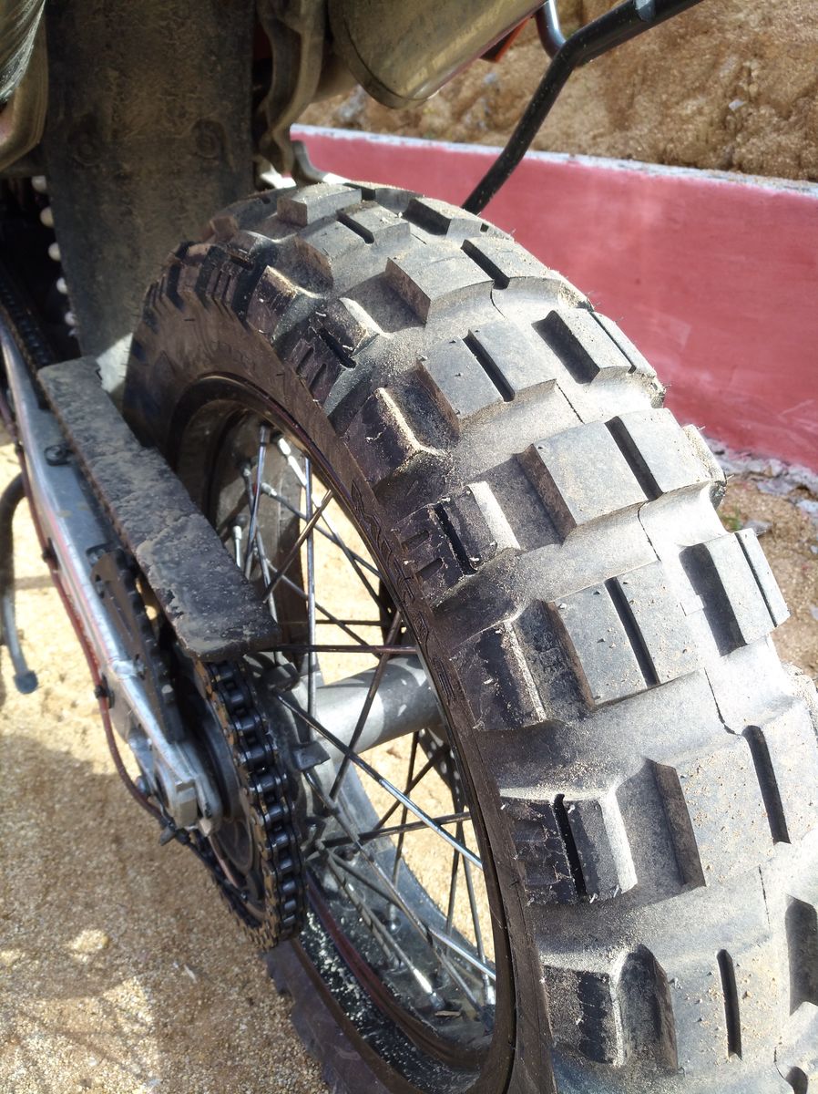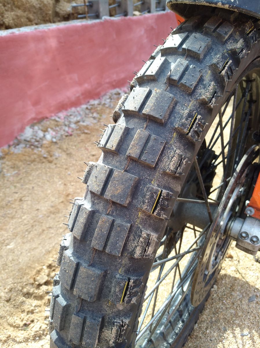 Nach 200km Betrieb sehen die Reifen wie folgt aus (80% Asphalt, 20% Schotter). Nach gewöhnungsbedürftigen ersten Kontakt bin ich mit dem Grip auf Asphalt recht zufrieden. Richtige Schräglagen wie mit dem CTA habe ich mich (auch wegen sozia) noch nicht getraut Wink