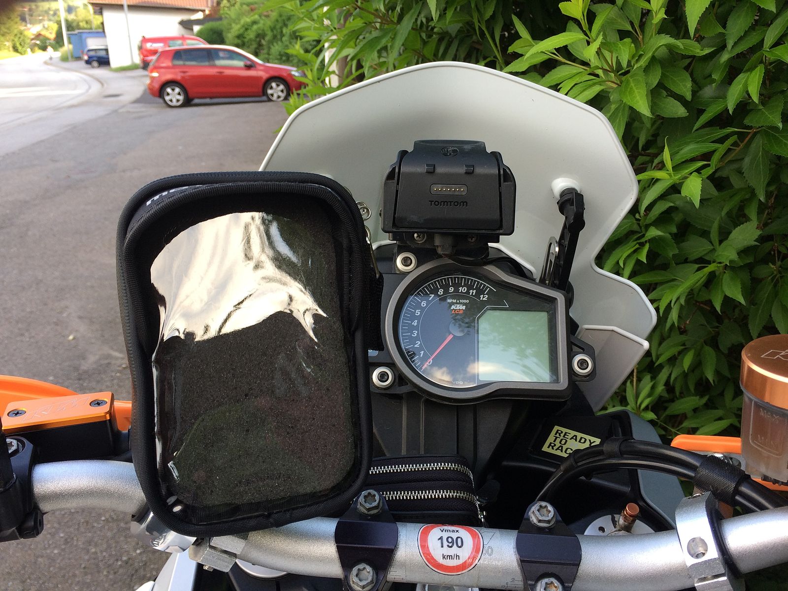 wäre mir auch zu groß. Da ist das von BRB empfohlene case deutlich besser. Habe ich am Motorrad auch schon getestet (jetzt am Fahrrad) und hält super. Im Winter will ich die Halterung so umbauen, dass die Halterung genau hinter das Windschild kommt.