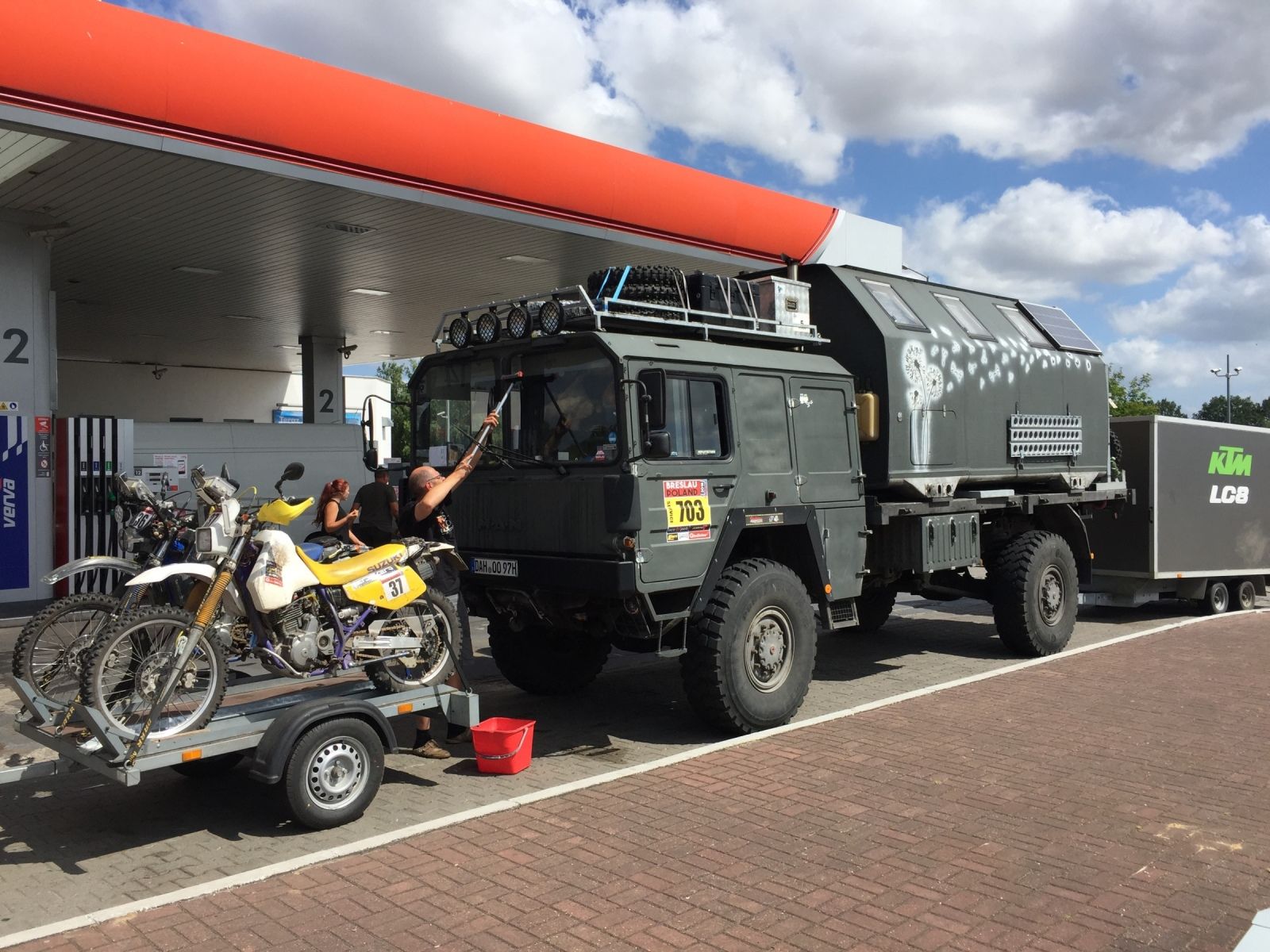 Wir tanken beide zusammen und fahren zum 2. Start.