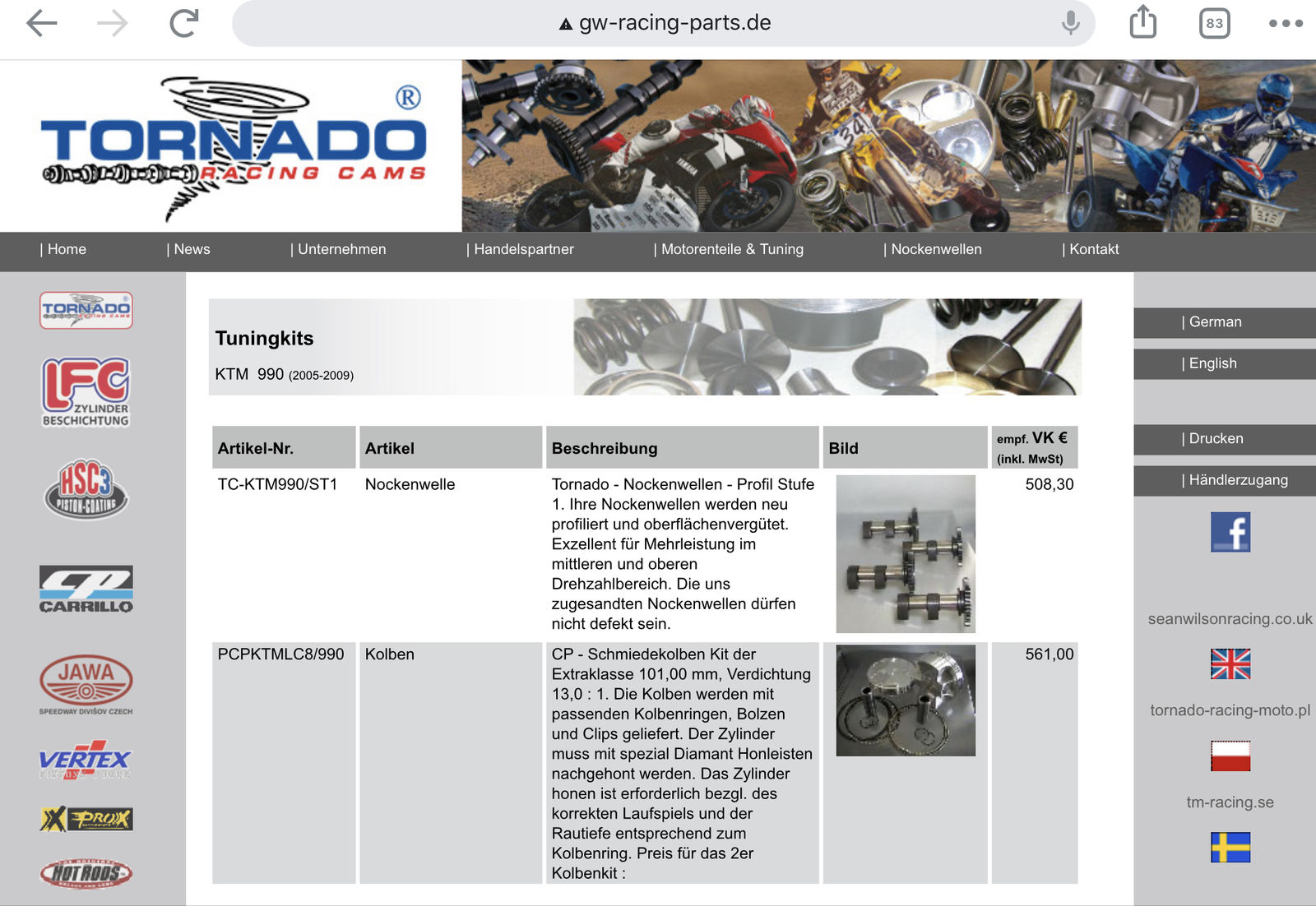 Es sind die "Nockenwellen ´06" der 990er, welche bei 248 Euro liegen!