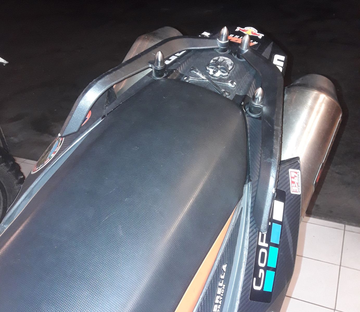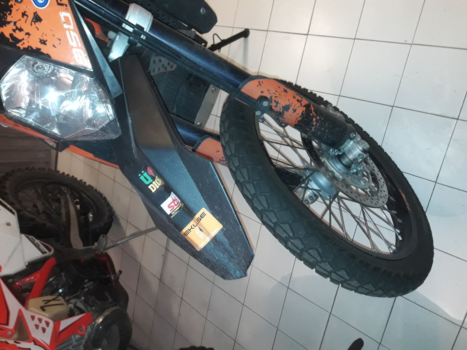 - hinterer Bremshebel ( nur Dreieck ) in orange mit leichter Verlängerung nach außen ( meiner Meinung nach besser so ) , Karbon Abdeckung Kupplung und Erweiterung des Unterbodenschutzes für die Kupplung