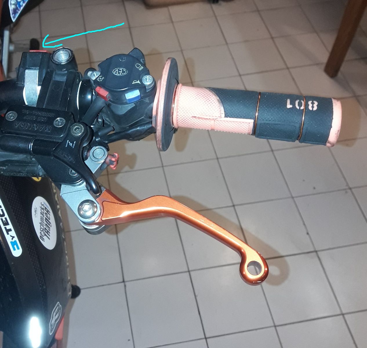 - Lenkerhebel kurz und in orangem Alu , Starttaster auch auf der linken Seite.
