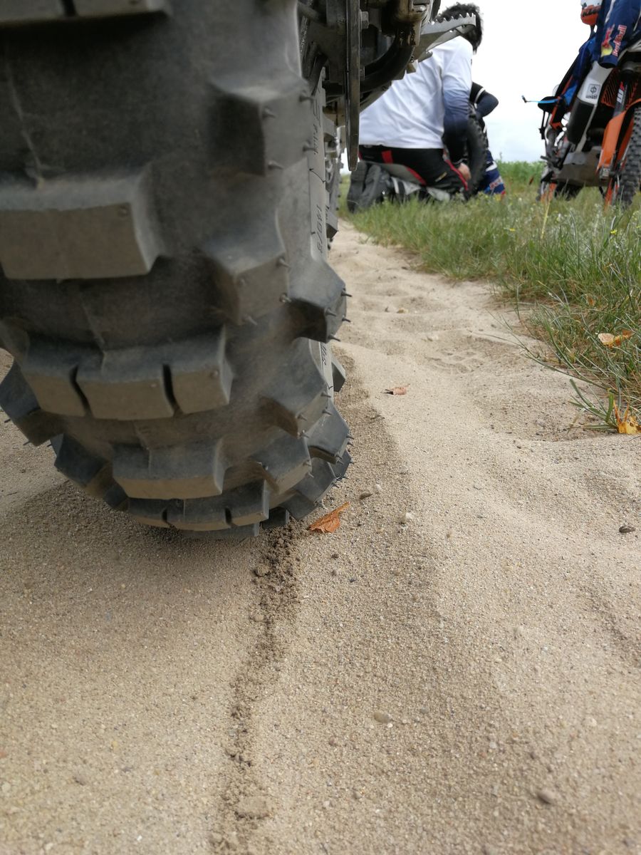 Streckenlänge OK, Sprünge fahrbar mit etwas Airtime, Bodenwellen schwer aber i.O. ( in der Mittagspause schieben die alles platt)aber der Untergrund...die Fahrspur relativ fest aber nur schmal, daneben unendlich tiefer und weicher Sand. Die Anlieger zu klein und zu weich für uns. Die Linien zu halten ist oft Wunschdenken und kostet Kraft.
