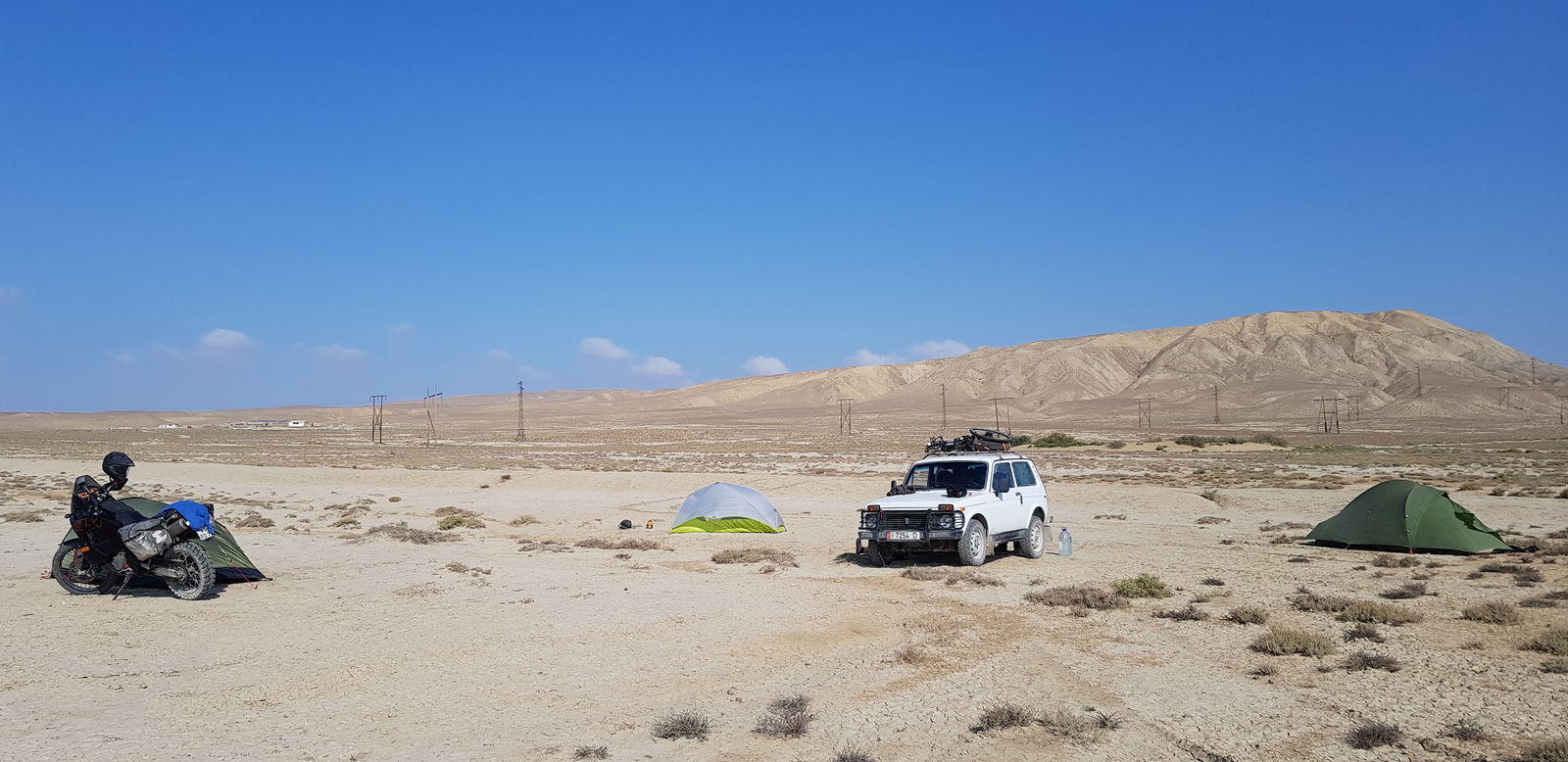 Camping in Aserbaidschan am Fuße eines Schlammvulkans