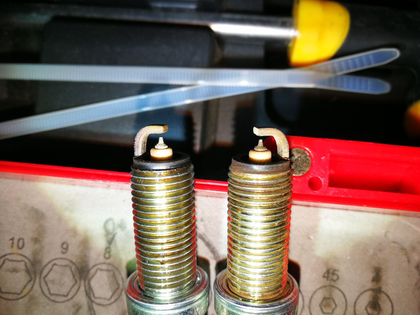 Danke. Mit der passenden 14er Nuss hats geklappt. Die vordere Kerze ist schon echt ne Fummelei, aber mit Geduld und Spucke geht's eigentlich doch recht leicht. Wenn der Kühler etwas nach vorne geschwenkt wird ist eigentlich genug Platz. Ist zwar immer noch eng um z.b. mit dem Drehmomentschlüssel die Kerze anzuziehen aber es geht gerade so eben. Die Kerzen sehen nach den 15600km eigentlich noch echt gut aus.