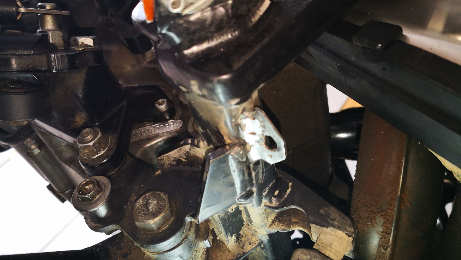 Hallo...Ich wollte heute einen neuen Kettensatz an meiner 950er Ad einbauen und dabei auch beide Kettenschleifer erneuern... Als ich den unteren Kettenschleifer abbauen wollte ist mir aufgefallen das einer der beiden Halter vom Rahmen abgebrochen ist... Ich habe dann gleich bei meiner zweiten 950er nachgeschaut und festgestellt das der Halter auch hier schon mal nach geschweißt worden ist. Ich habe also den Halter wieder an geschweißt aber nicht wie vom Werk mit nur zwei Schweißpunkten.... Also mal dort