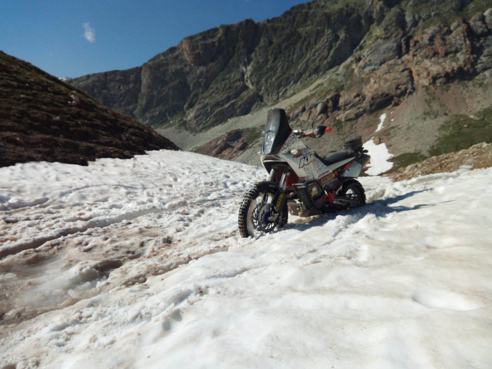 Anfahrt vom Kanton Bern Richtung Wallis am Freitag Nachmittag mit Zwischenübernachtung im wunderschönen Evionnaz (Herberge o.k. und sehr günstig für die Schweiz: 50CHF). Dann am Samstag bei 38°C "Abkürzung über eine Mountainbikepiste in Salvan/Le Cerisier nach Finhaut Richtung MontBlanc. Dann über Chamonix, Cormet de Roselend, Iseran, MontCenis, Susa zum Camping Gran Bosco in Salbertrand. Die Rally-Truppe hatte sich ja schon installiert und im Laufe der Woche trudelten noch mehr LC8ten und sonstiges Gebrumm ein. Wir haben dann gemütlich zu zweit ein paar Touren unternommen (Finestre/Assietta, Sommelier, Lago Nero) sind einmal mit der Truppe ausgeritten (wobei das hat sich nach zehn Minuten erstmal etwas verzögert weil eine 990er streikte), mit denen wir es dann doch noch bis Lac Mont Cenis hinaufgeschafft haben. Ich wie immer ganz hinten Lumpensammler gespielt und ein Franzose hat sich dann auch prompt in ein entgegenkommendes Affentwin-Paar verkeilt. Zum Glück nix schlimmes passiert ausser ein paar verbogenen Teilen, Schrammen und einer schockierten Sozia. Danach ward die Truppe vom Winde verweht und wir fuhren zu viert das nächste Refuge an, um die Plautze zu füllen. Wir sind dann gemütlich weitergfahren (Mont Cenis - echt lässig da oben) und haben den Nachmittag ausklingen lassen. Mein Bedarf an Grossgruppe war dann erstmal wieder gedeckt, woraufhin wir am nächsten Tag eine Tour zum Lago Nero (Hammer!) machten. Irgendwann sind wir dann auch noch das Valle d'Argentere (auch ganz toll) hochgefahren - das kostet zwar 3€, aber das ist es wert. Zwischendrin mal die Gegend erkundet und ein paar Sackgassen gefinden.