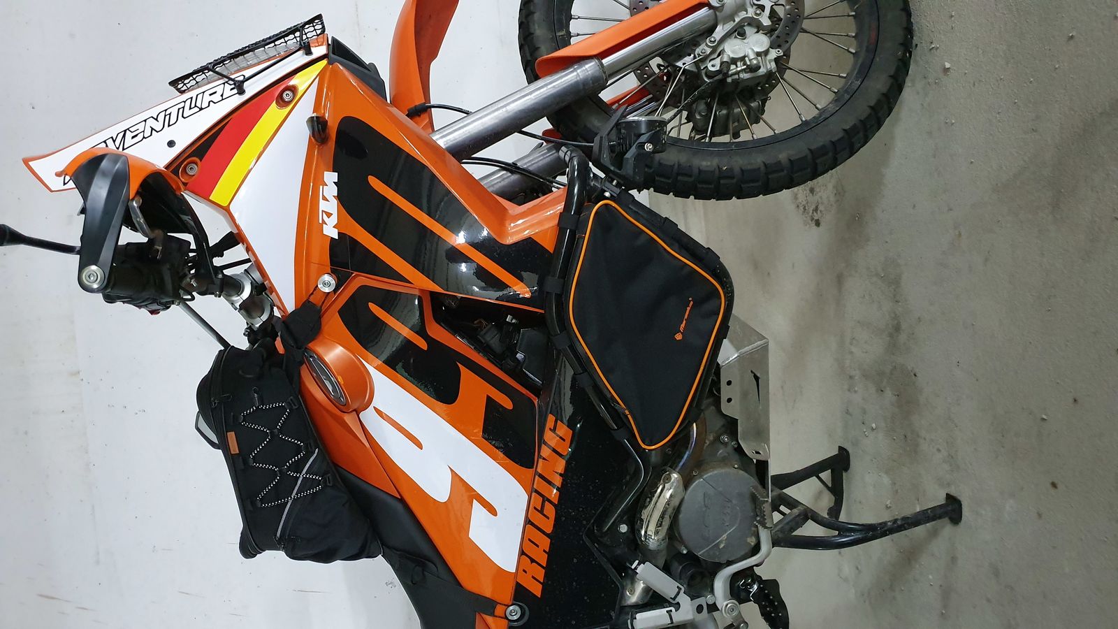 Habe mir von Marselus ( https://www.marselus.com/en/e/ktm-90/ktm-950-990-175/ ) für meine SW-Motech-Sturzbügel passende Täschchen geholt Ganz gezielt mit orangefarbenen Kanten Bin begeistert. Volumen ist eher gering, da die Taschen zum Glück nicht so Hamster-backig sind und nicht soweit rausstehen. Und ob die wasserdicht oder immerhin stark abweisend sind, kann ich auch nicht sagen. Die Ausführung des Reißverschlusses läßt es zumindest vermuten. Sitzen schön mittig im Rahmen und werden an Wasser unempfindlichen Kleinkram aufnehmen, was sonst wertvollen Platz an anderer Stelle eingenommen hat. Kontakt ist super und Versand war auch flott. Der angegebene Preis ist pro Set (Taschen re./li.) + Versand = 40 EUR. Kann man nix sagen, meide ich.