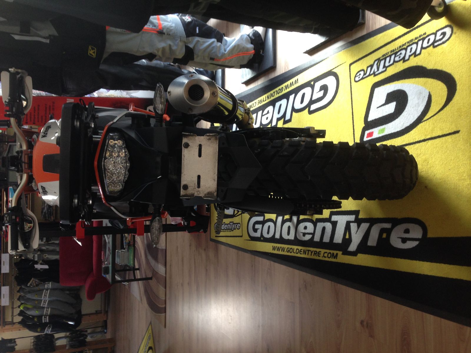 Muss jetzt noch eine Lösung finden um meine schwarze Gabelschützer einer EXC zu befestigen.
