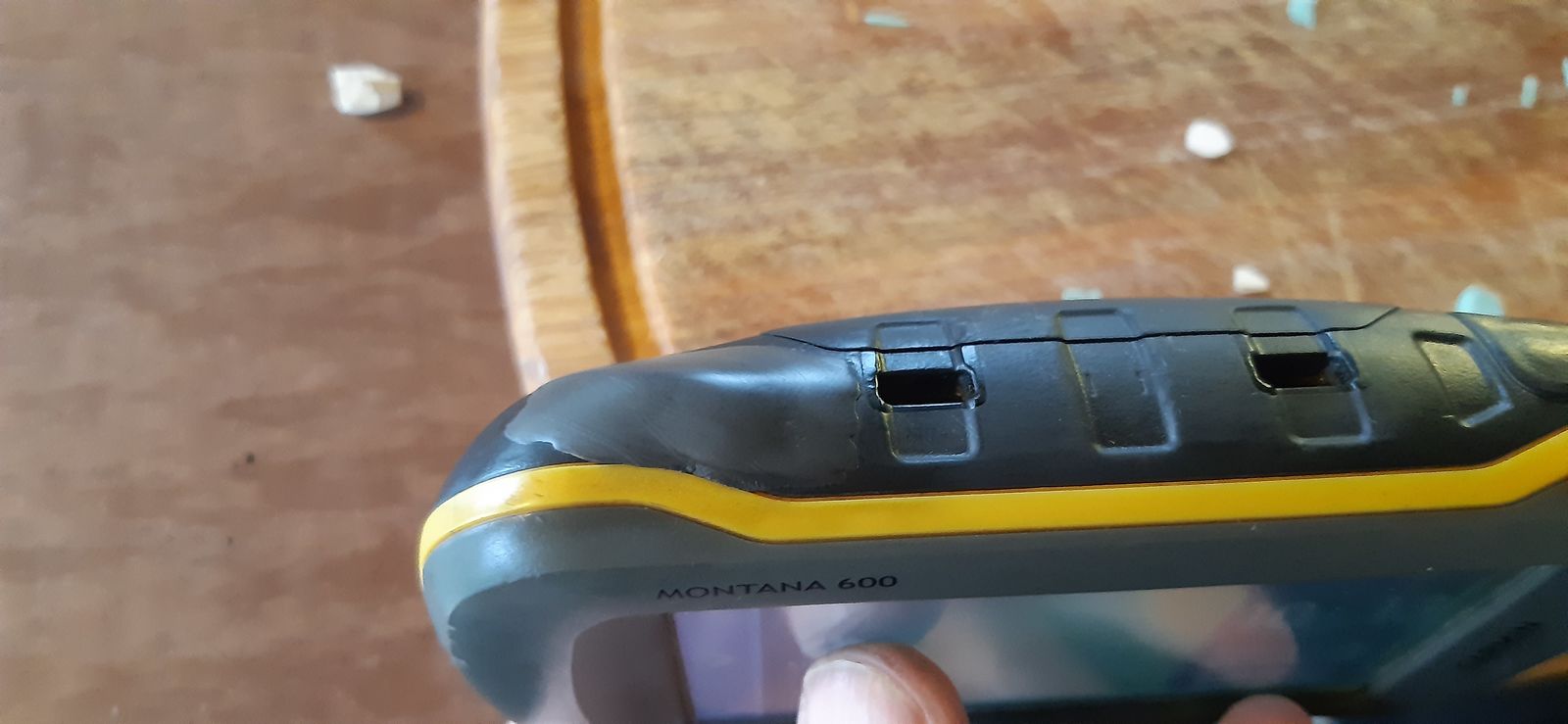 Der Gummi des Einschaltknopfes meines Garmin Montana ist gerissen, wodurch das Gerät undicht wurde.