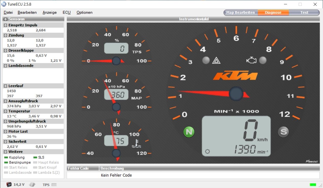 Ich hatte in den vergangenen Jahren mehrmals einen Defekt am Drossenklappenkörper, mit der Folge Leerlaufdrehzahl -> 4500U/min etc. Das kann man hier im Forum nachlesen. Ich habe einzelne Teile des DKK getauscht (Sensor, Stellmotor) und danach mittels TuneEcu die Sollwerte eingestellt - was jedes Mal auch mehr oder weniger Erfolgreich abgeschlossen wurde und viele TKM funktionierte. So richtig 100%ig wie neu lief das Moped aber nie mehr.