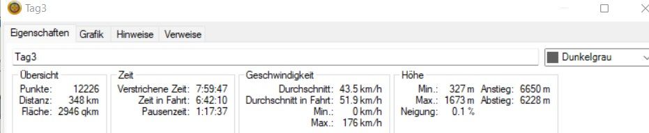 Tag 1 & 5 hat sie mich jeweils bei +/- 250Km