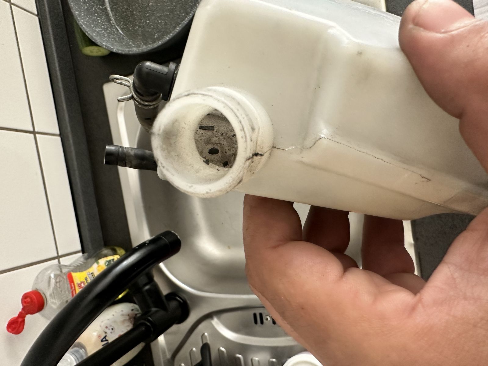 Kühlwasser Behälter habe ich abgebaut und laut Anleitung Kühlwasser gewechselt trotzdem kein Erfolg was aber mir auffiel ist im Ausgleichs Behälter war viel dreck bzw. schwarze Flecken so wie Sand oder Schlamm ich Behälter gereinigt aber schlusi wird sich die angucken und fertig machen hoffentlich 😀😀😀😀😀