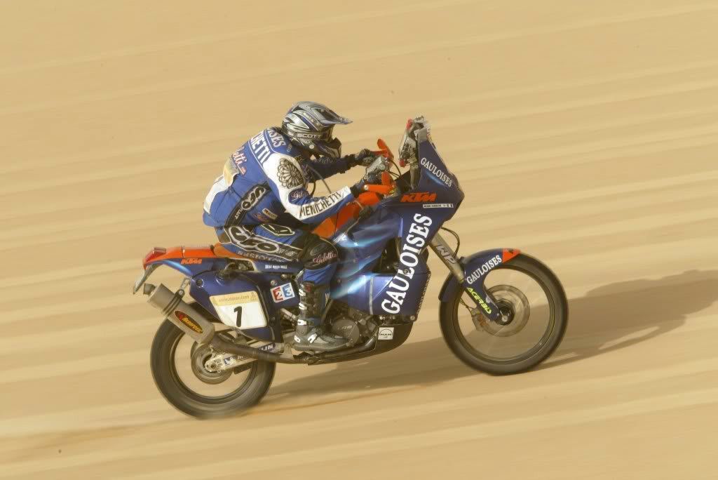 Hallo quercusilex, vielen Dank für den link, aber was ich meine, ist eine ziemlich genaue Kopie des blauen Meoni-Gauloises-bikes, auf der die Gauloises-Flügel als fünf einzelne Aufkleber aufgebracht sind.