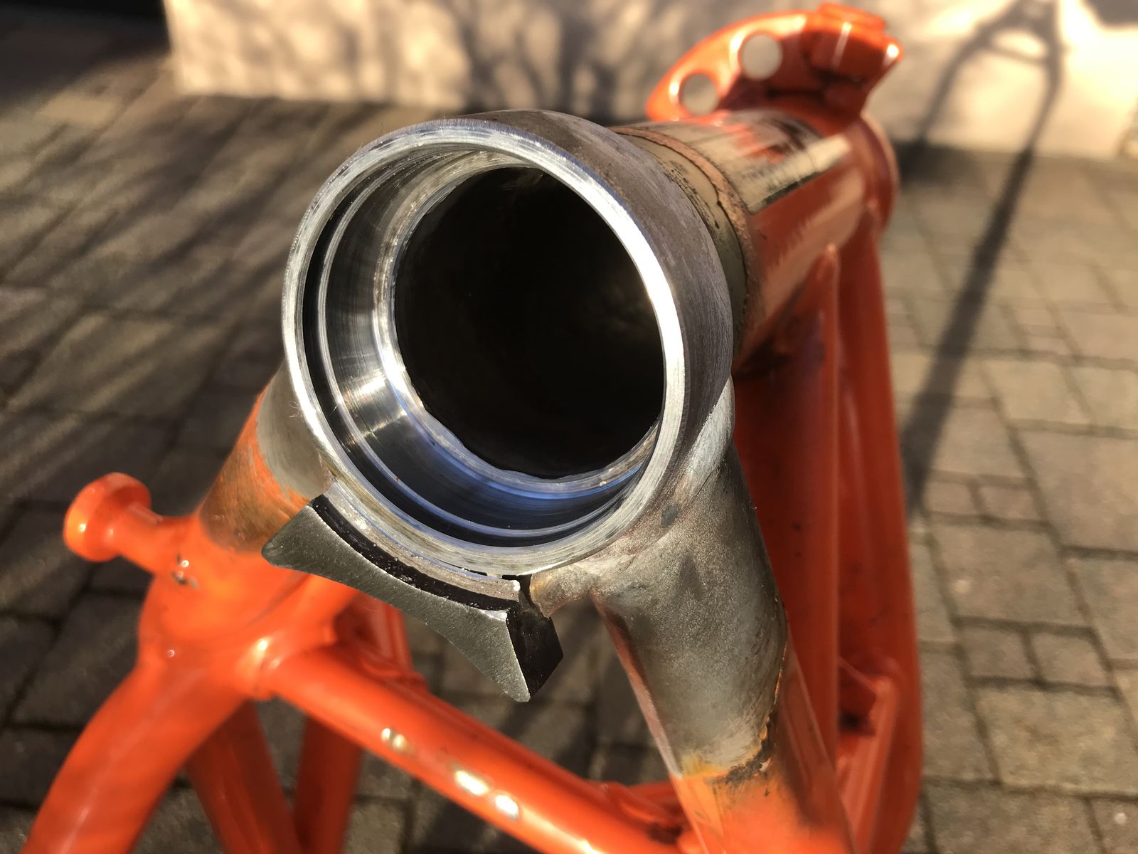 Der Rahmen meiner Verunfallten SE sowie die Gabelteile sind fachmännisch gerichtet.