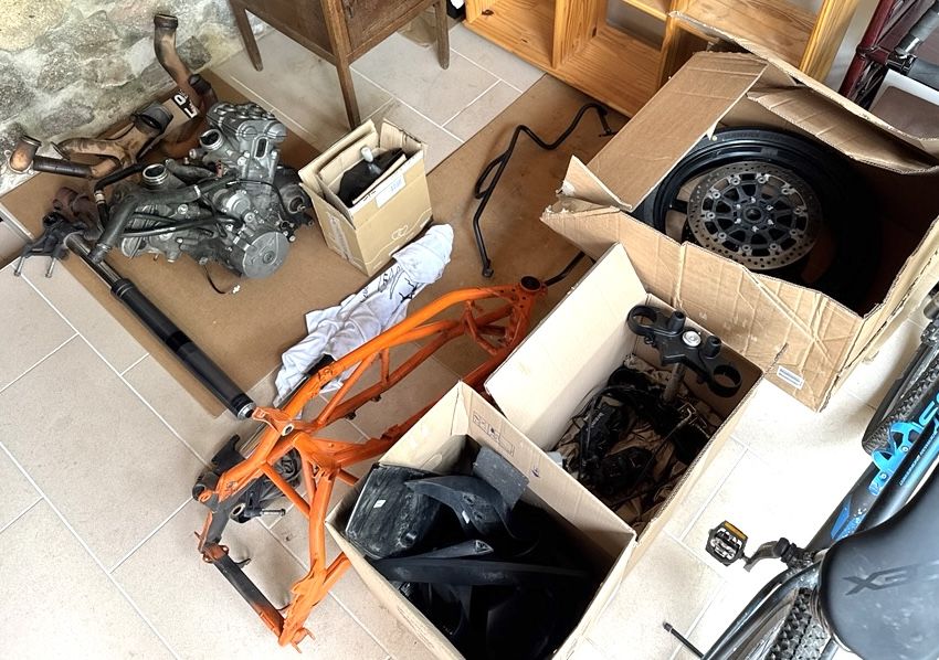 Nachdem nun die SM-R zerlegt ist und ein paar wertvolle Teile hat liefern können wie Tank, Zündschloss, Lampe, Frontmaske und noch bissl was,