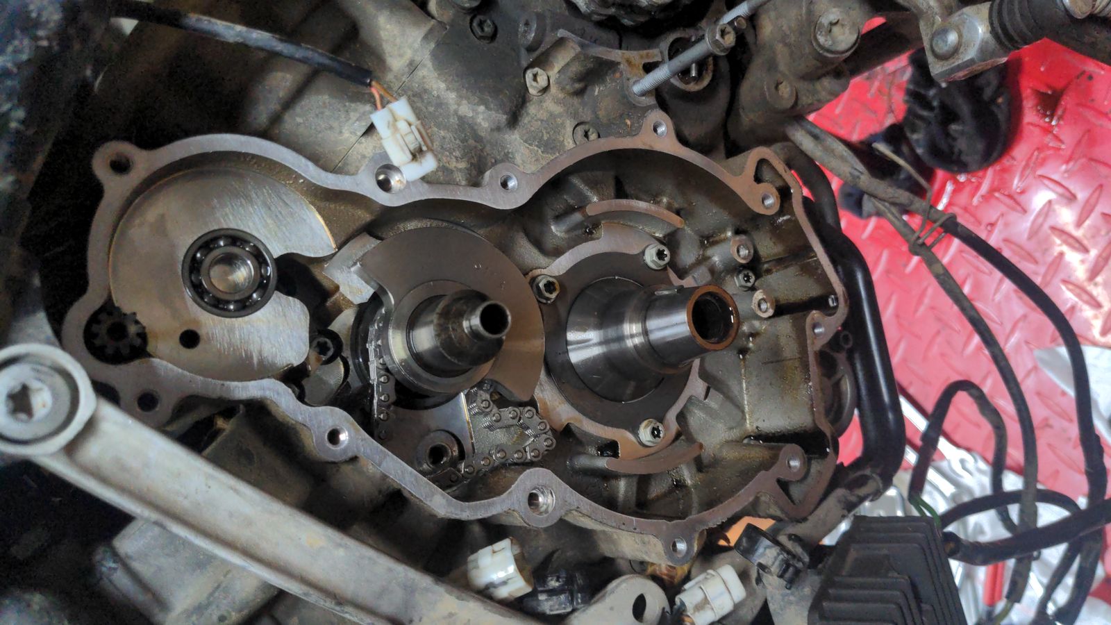Danach die kleine Scheibenfeder raus, dann das Zahnrad von der Steuerkette von der Welle ziehen, dann auch die Scheibenfeder raus und die Welle nach links aus den Motorgehäuse rausziehen.