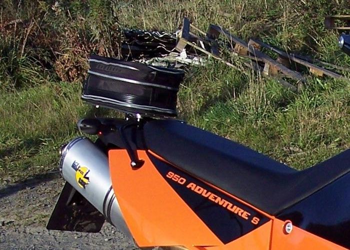 Will man die Tasche dauerhaft und richtig fest verschrauben, dann eine Aluplatte zuschneiden, die die Grundfläche der Tasche wiedergibt, Löcher in den Taschenboden bohren und die Aluplatte von innen mit dem Träger verschrauben. Hält ewig... Und ist natürlich besser als jeder Tankrucksack...