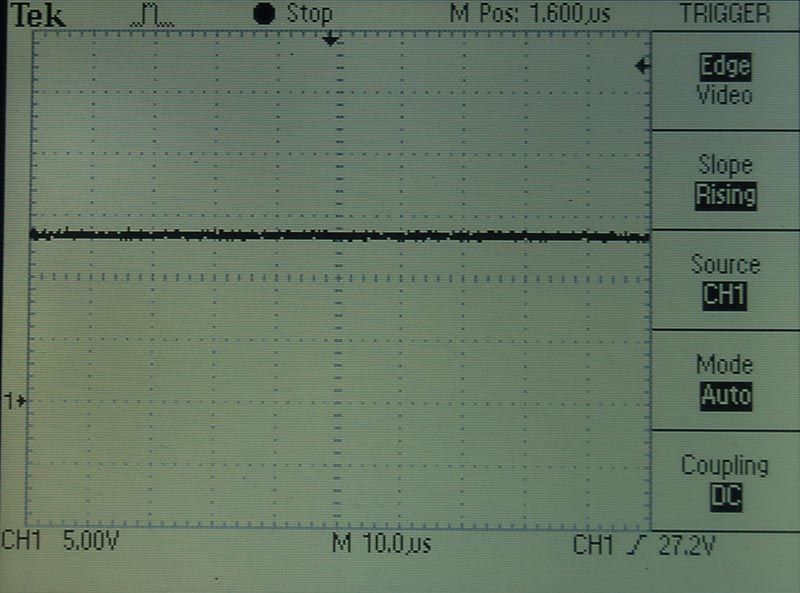 | Spikes bei eingeschaltetem Motor. Die Grösser der Spikes ist hier nicht erkennbar, da die Auflösung von Oszi nicht reichte. |