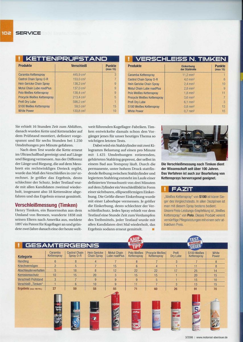 BeitragVerfasst am : Mi, 21. Jun 2006, 7:41    Titel: Test: Kettensprays Antworten mit Zitat