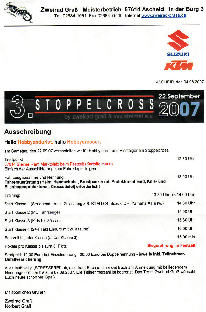 BeitragVerfasst am : Mi, 12. Sep 2007, 19:37    Titel: Stoppelcross für Hobby-Enduristen u Zuschauer am 22-09-2007