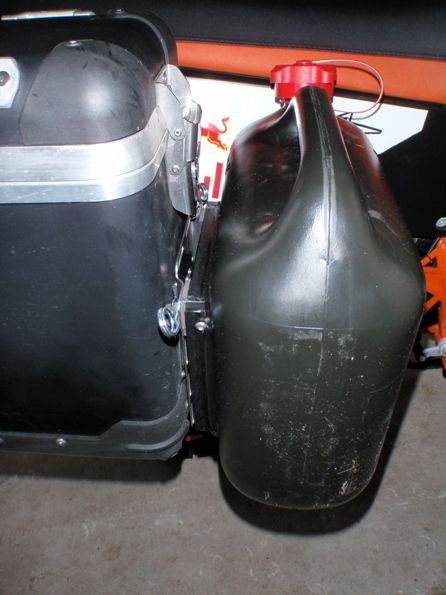 Fahre ich solo, sind die Tanks vorne, im Soziusbetrieb werden einfach die Koffer ausgetauscht und die Kanister sind hinten, ich hoffe dass hier die Abgase nicht zu heiß sind, was meint Ihr?